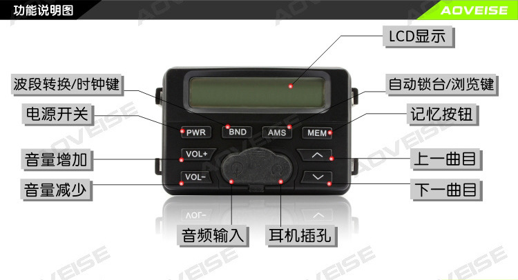 FM调频范围: 87.5 - 108.5 (± 0.55MHz)