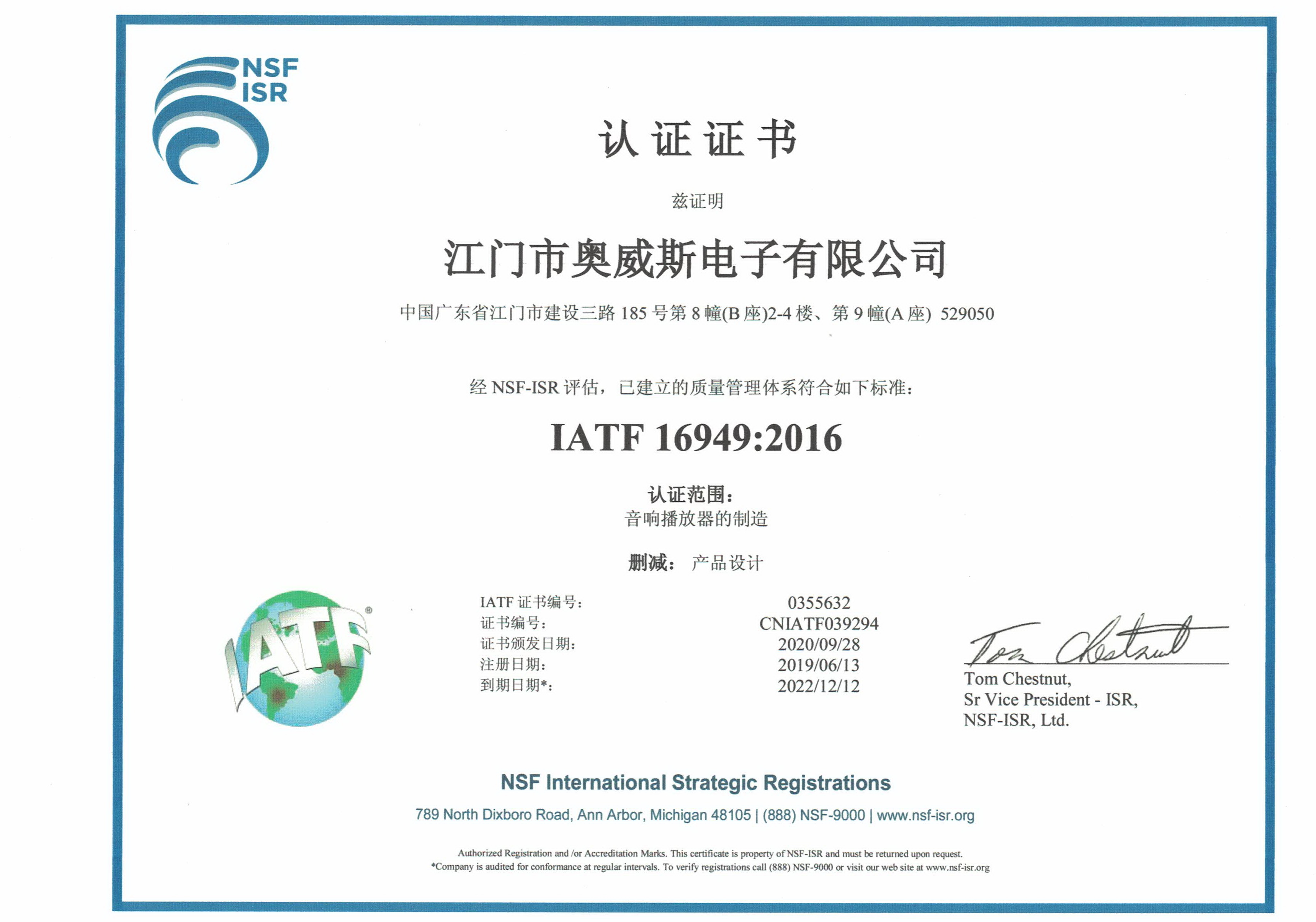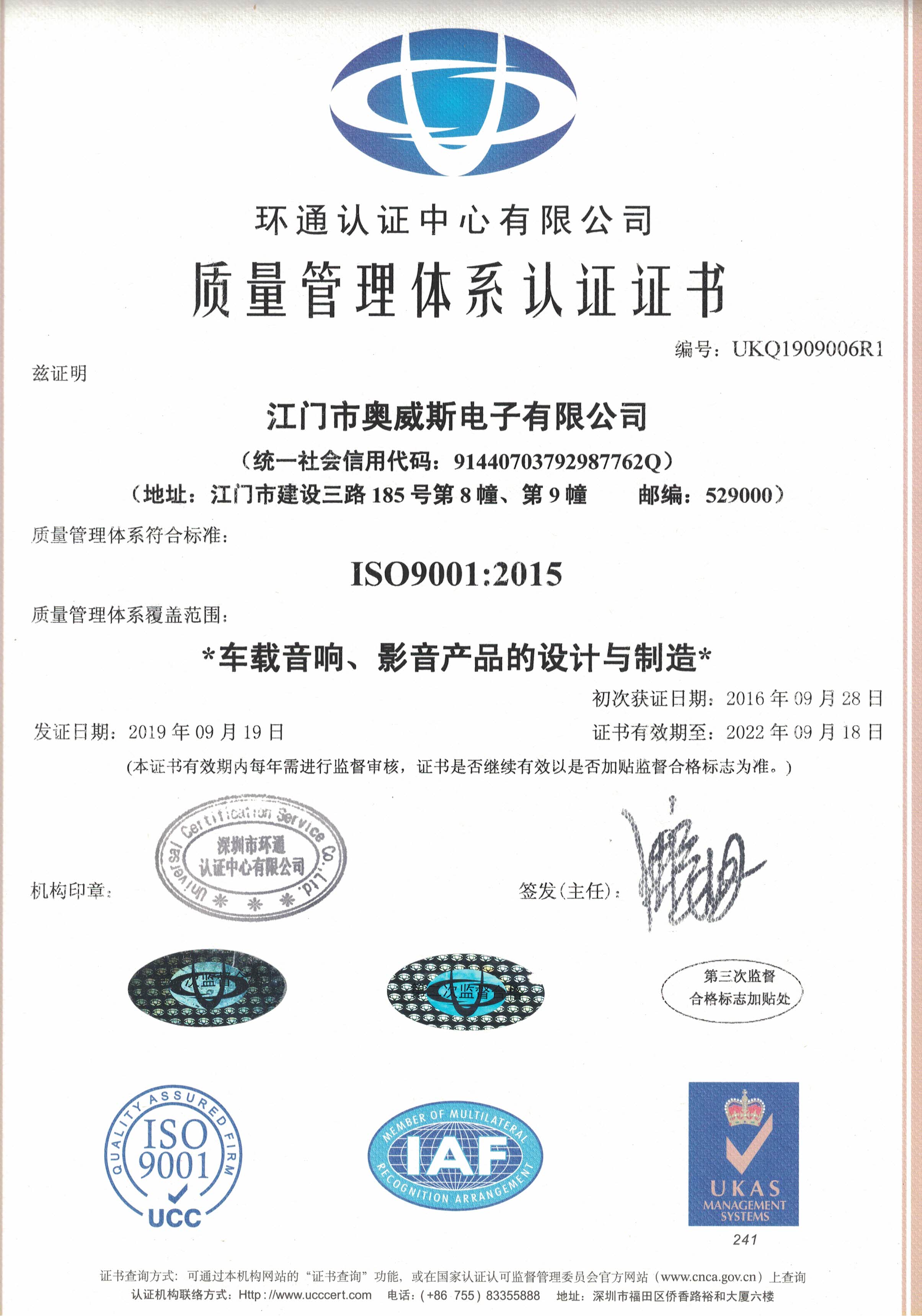 质量管理体系认证证书(19中文版)
